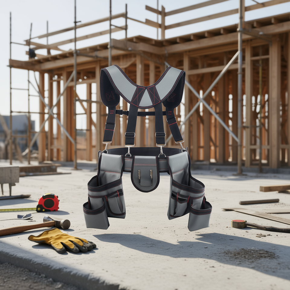 Cintura Porta Attrezzi Regolabile Resistente con Bretelle, 22 Tasche, Fibbia in Acciaio, Organizzatore da Lavoro per Uomo