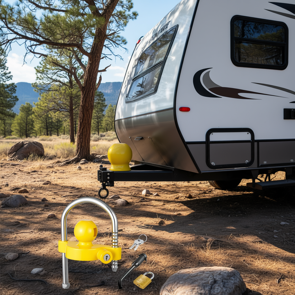 Kit Lucchetto Antifurto per Gancio Traino Rinforzato, Altezza Regolabile, Compatibile con Ganci da 1 7/8 e 2 2 5/16 Pollici, per RV, Resistente allo Scasso