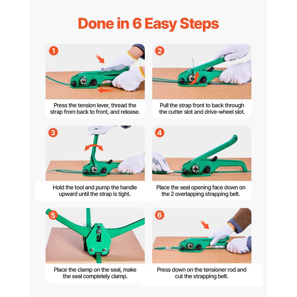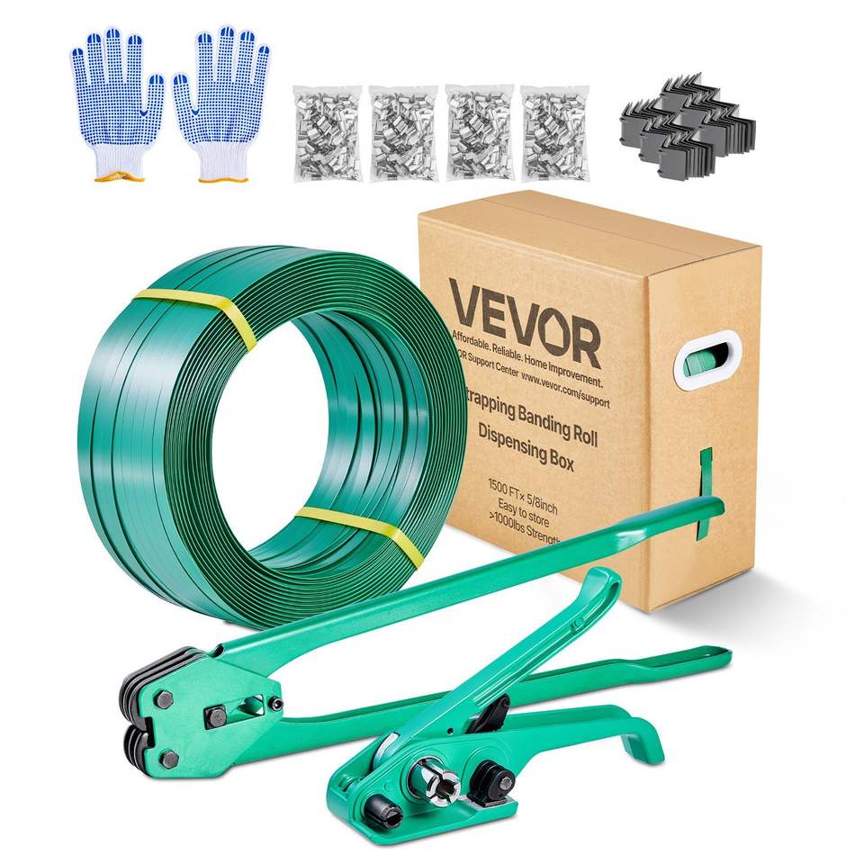 Kit Sigillatore per Nastro Resistente con 450 Sigilli Metallici, 150 Protezioni Angolari, Guanti e Nastro PET da 457 m - Soluzione Completa per Reggiatura