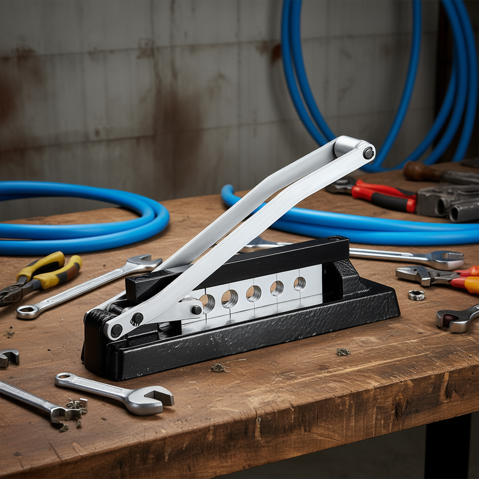 Heavy Duty Bench Crimper Kit 0.44-0.63 Inch PVC Rubber Air Hoses 5 Die Holes Ferrule Crimping Repair Tool Wire Crimpers