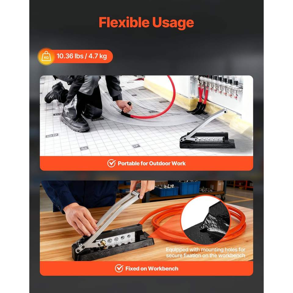 Crimpatrice da banco per impieghi gravosi con 5 fori per matrici, gamma di crimpatura 0,44"-0,63" per terminali standard in PVC e gomma, attrezzo per crimpatura cavi