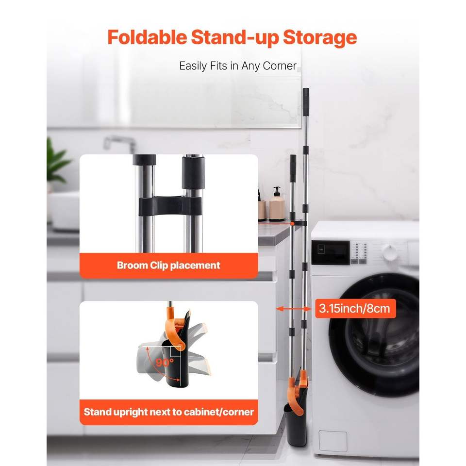 Heavy Duty Black Orange Broom Dustpan Set Self-Cleaning Teeth Upright Metal Dust Pan Long Handle for Home Restaurant Office Dorm