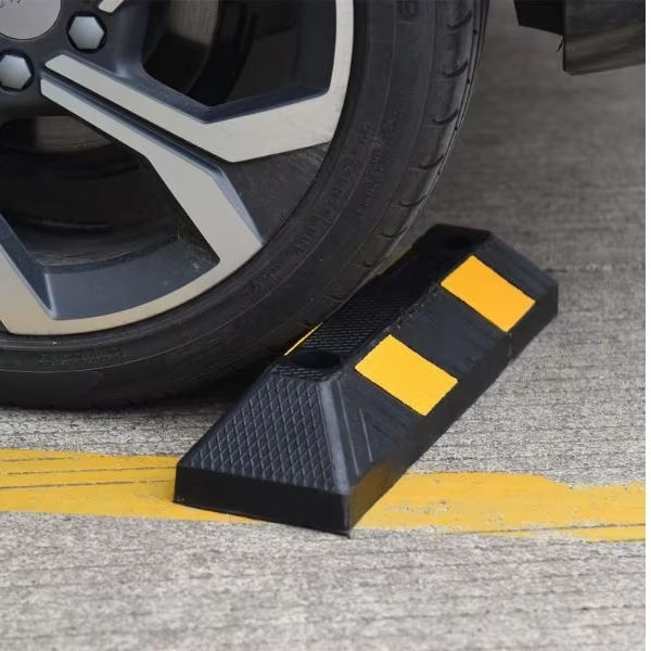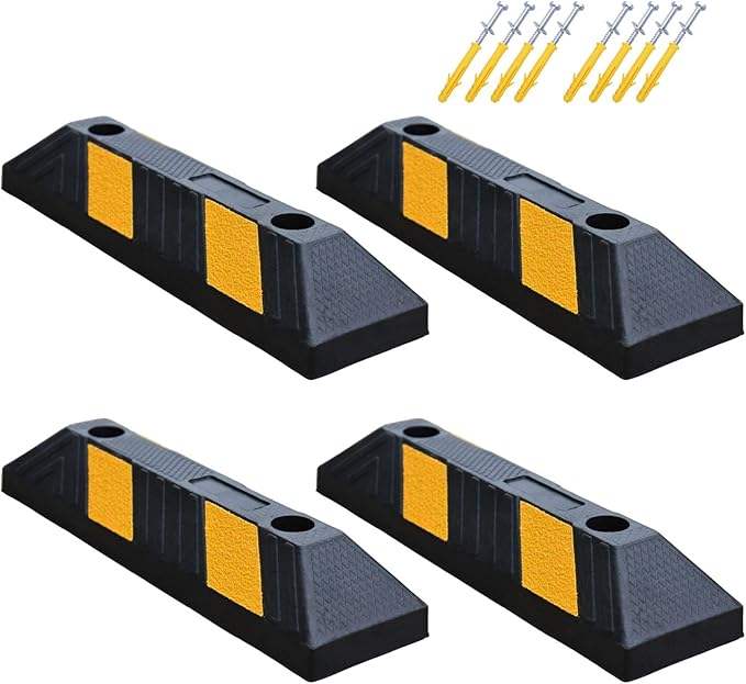 Heavy-Duty Car Stopper Black Yellow Reflective Rubber Parking Curbs for Garage and Car Parking Lot Wheel Block Bumpers