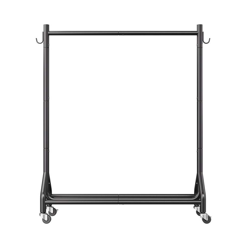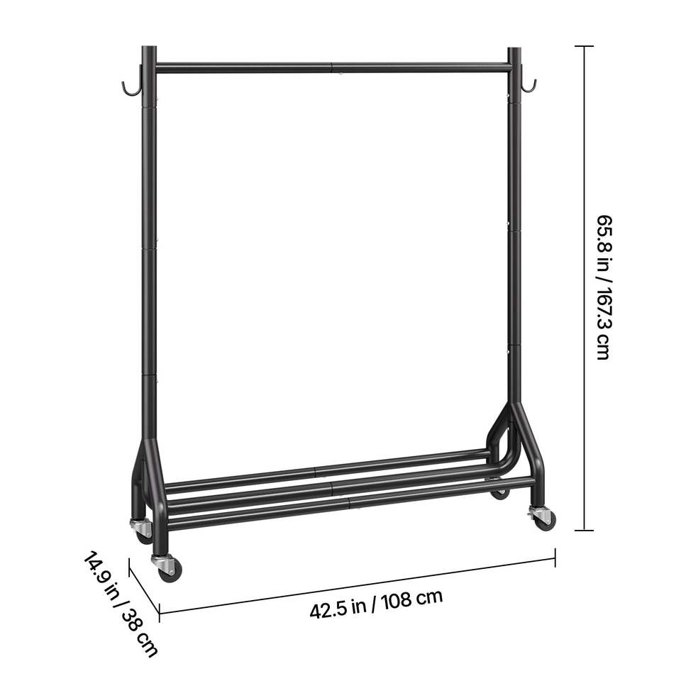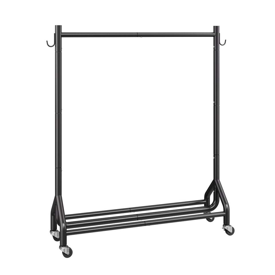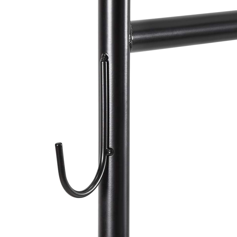 Appendiabiti in Acciaio al Carbonio Resistente con Ruote, Capacità di Carico 90 kg, Asta Appendiabiti e Ganci Laterali per Indumenti