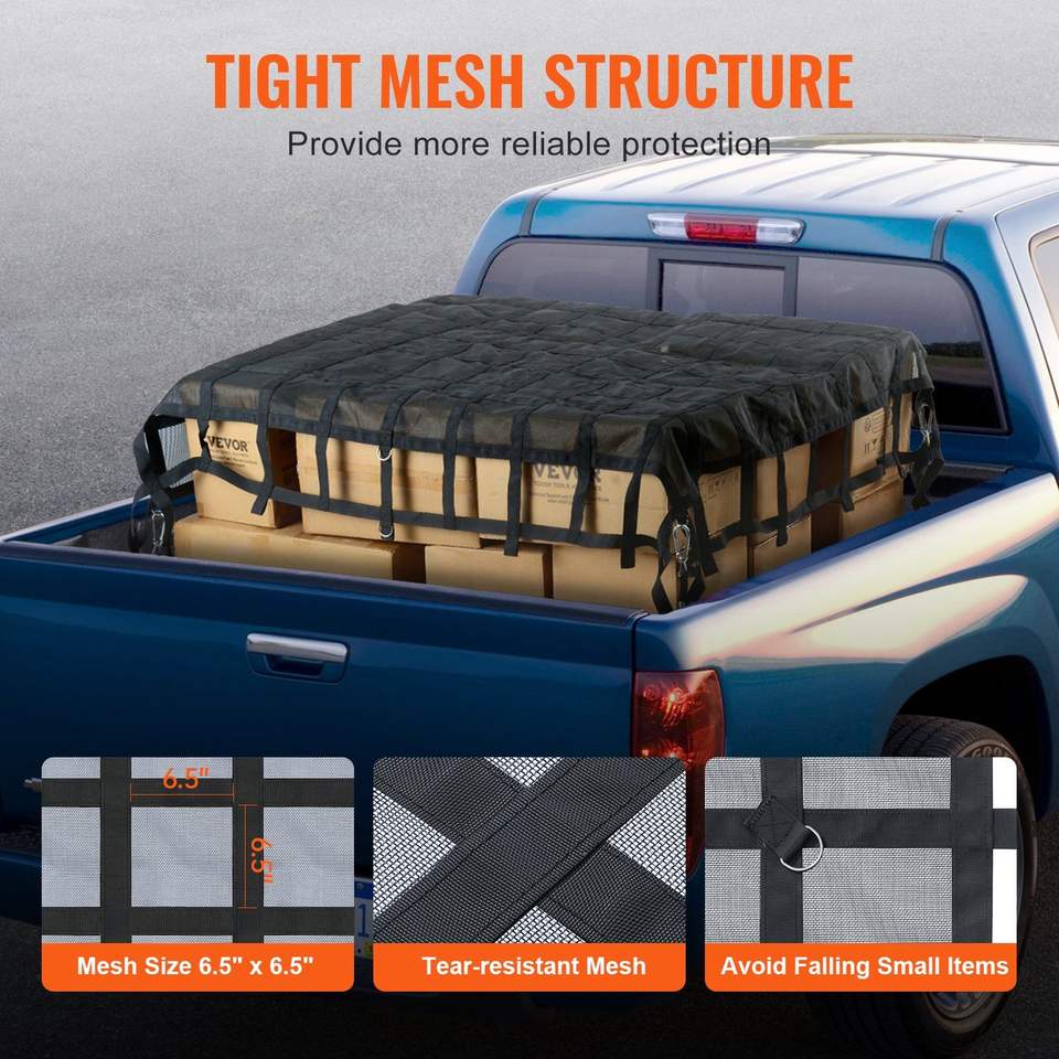 Rete di Fissaggio per Carichi Pesanti per Cassone Camion 96 x 81 Pollici con 4 Cinghie Regolabili, Moschettoni e Ganci a S, Resistente all'Usura, con Cinghie a Cricchetto