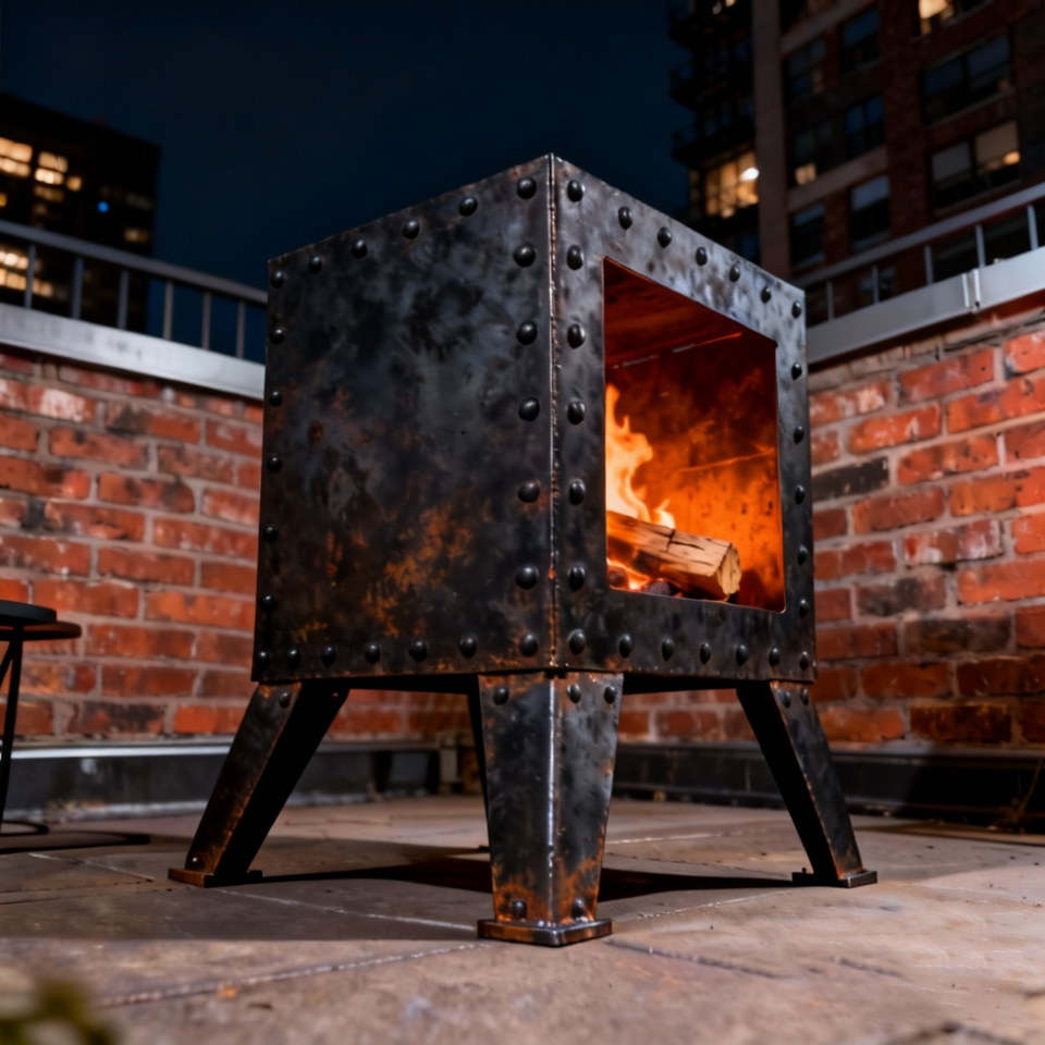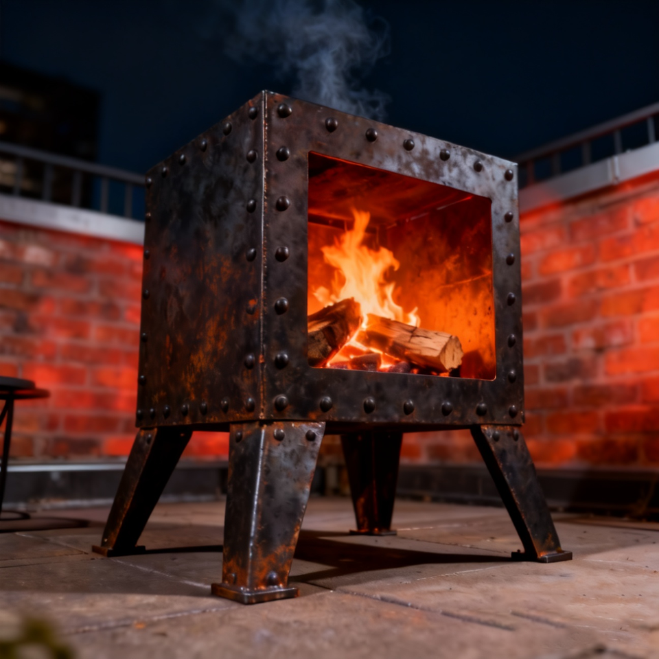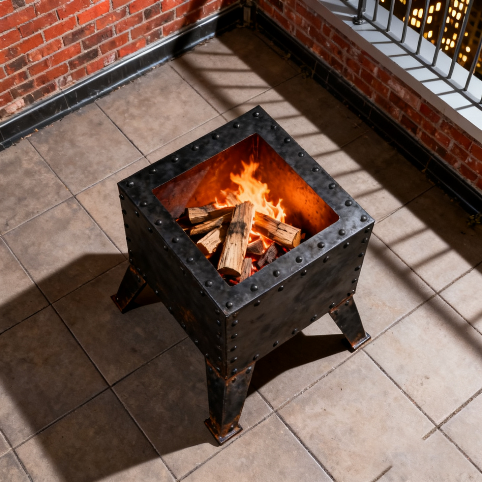 Braciere Quadrato in Ghisa Resistente con Gambe Robuste e Costruzione Rivettata, Stufa a Legna per Riscaldamento Esterno