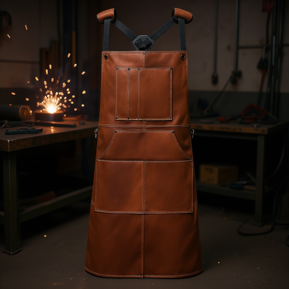 Grembiule da saldatura in pelle di vacchetta resistente al calore per saldatura e lavori di saldatura, taglia unica