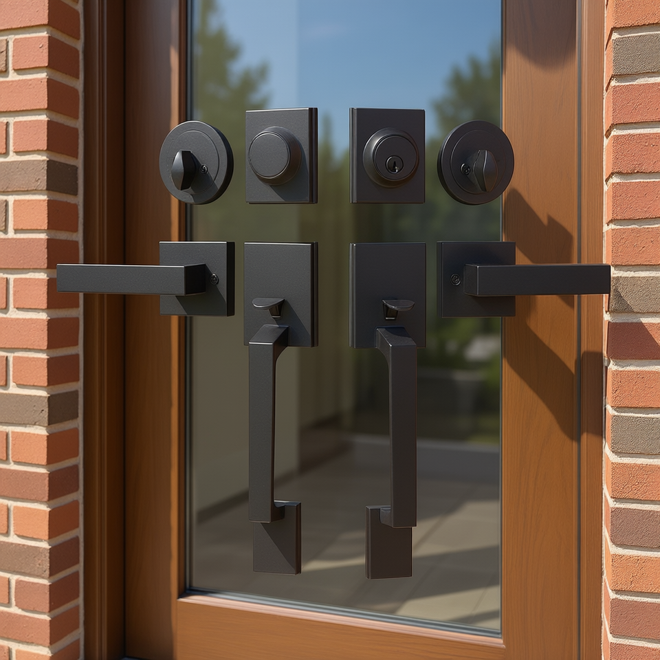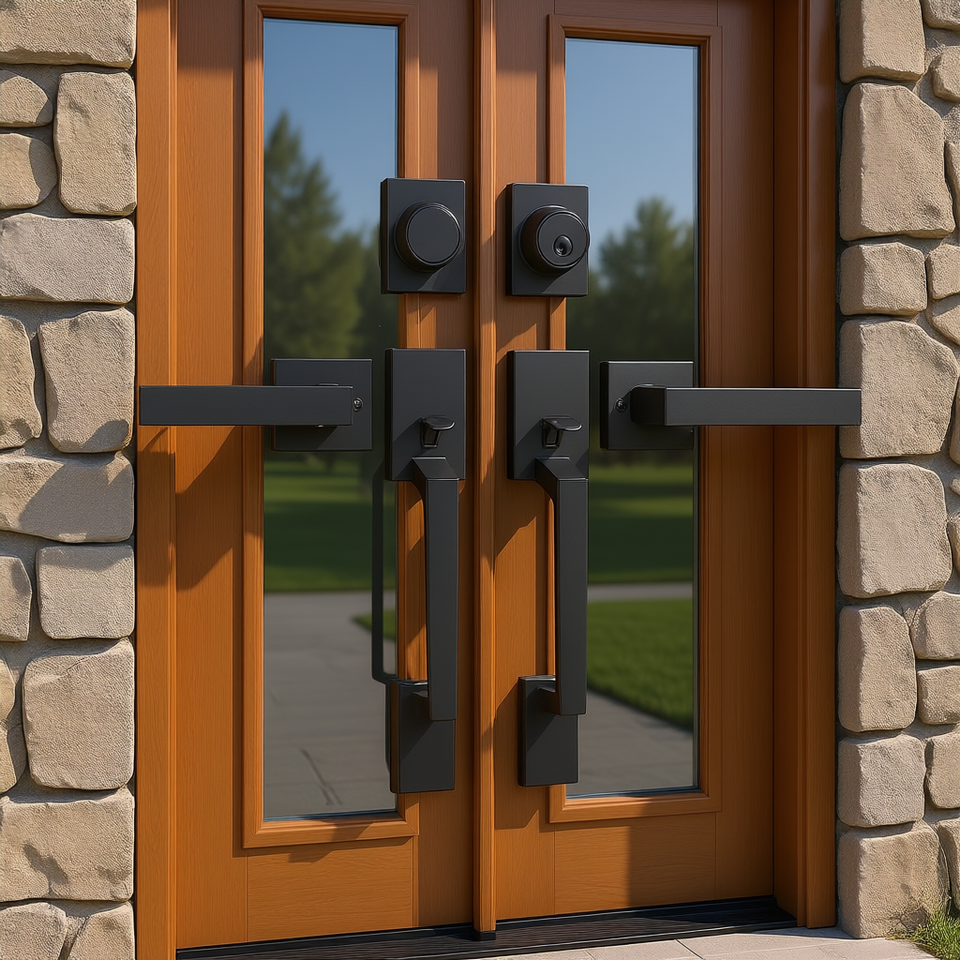 Set di Maniglie per Porta Doppia Nero Opaco, Leva Quadrata Reversibile, Set Serratura per Porta Esterna Resistente