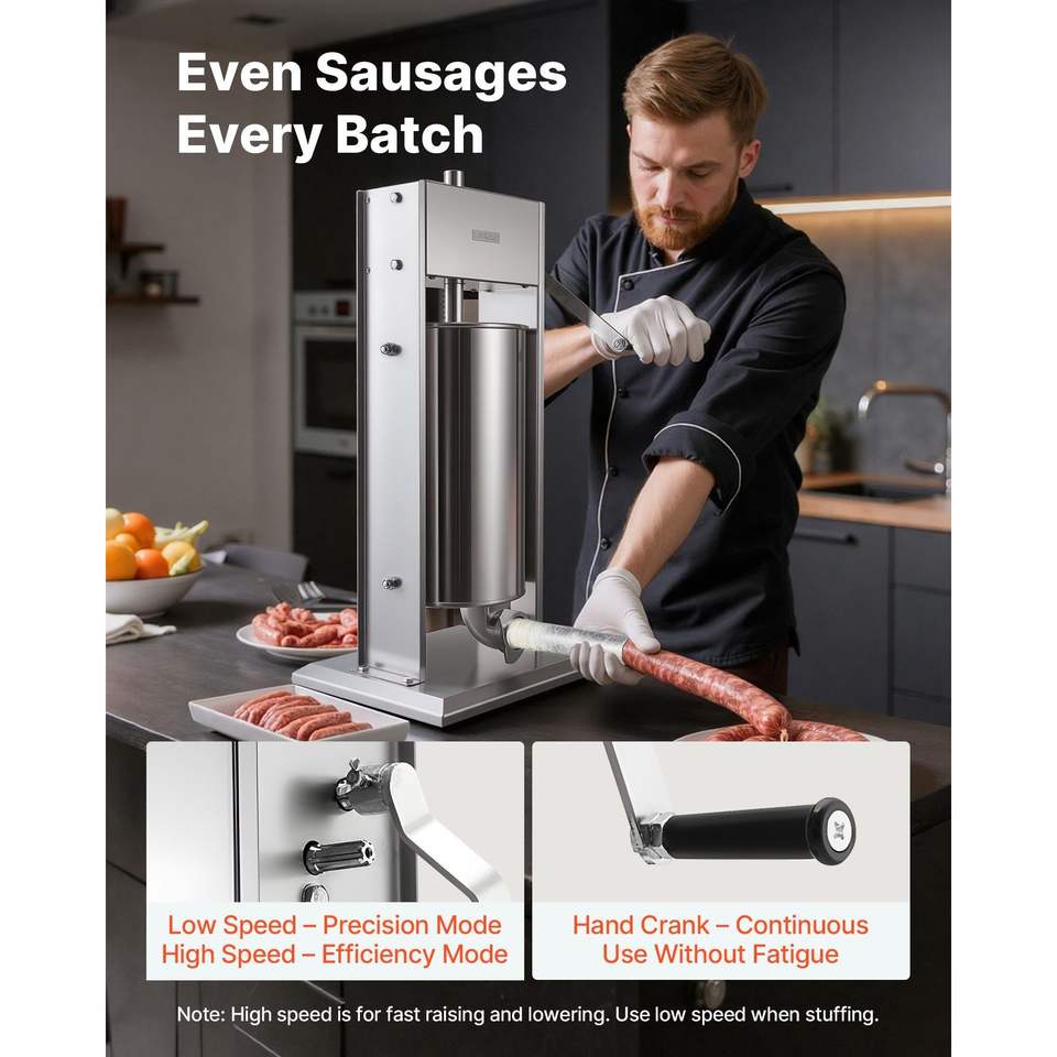 Insaccatrice Manuale a Doppia Velocità per Uso Intensivo, 33 LBS/15 L, Verticale, per Insaccati, in Acciaio Inossidabile