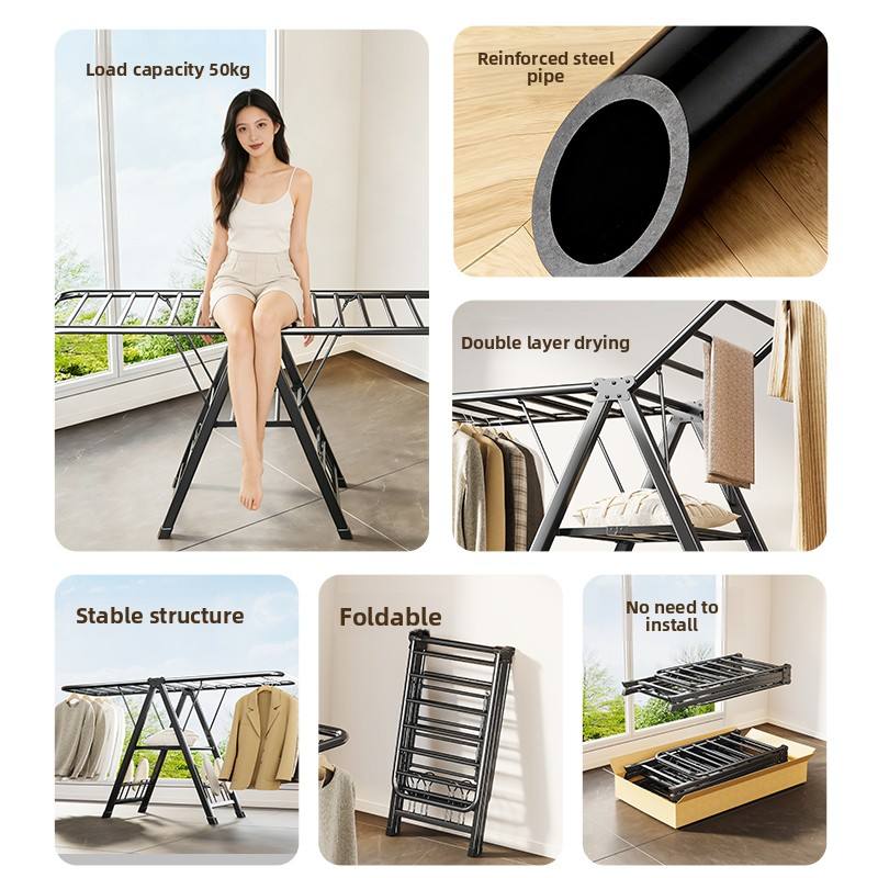 Stendibiancheria Pieghevole Resistente per Interni ed Esterni con Design Salvaspazio e Supporto Regolabile a Ala di Gabbiano