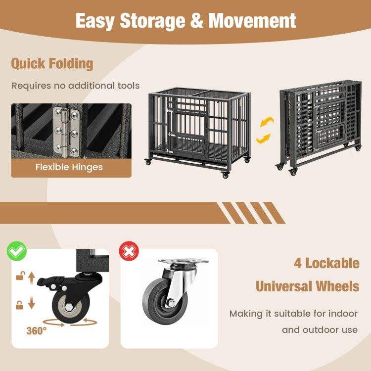 Gabbia per Cani Pieghevole in Metallo Resistente, Anti-Morso, con Ruote Universali Bloccabili