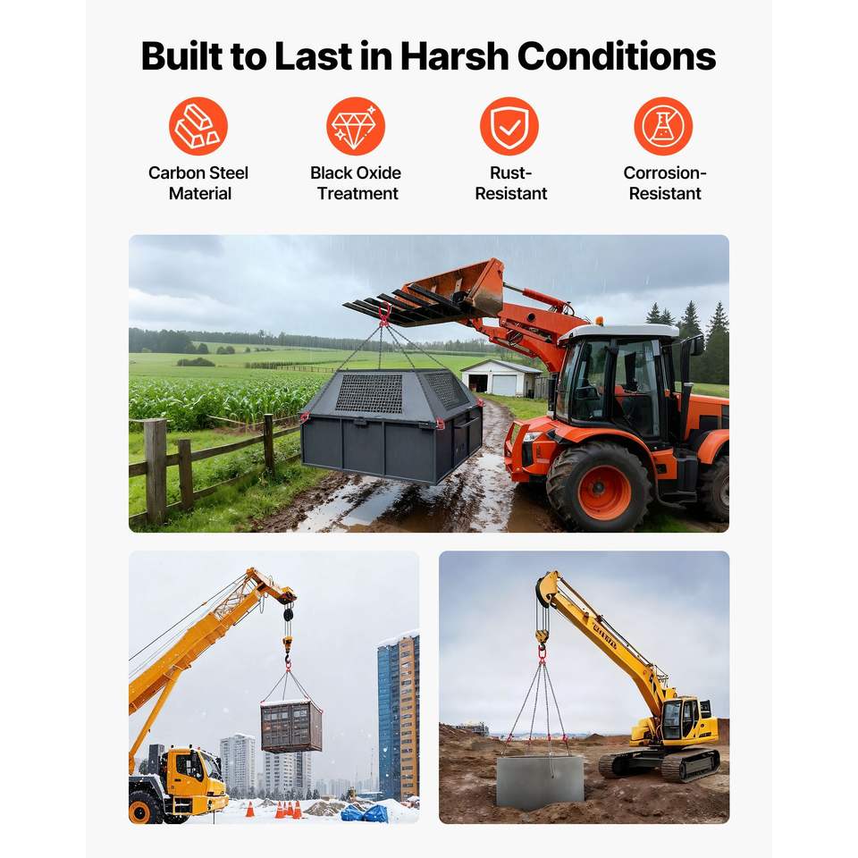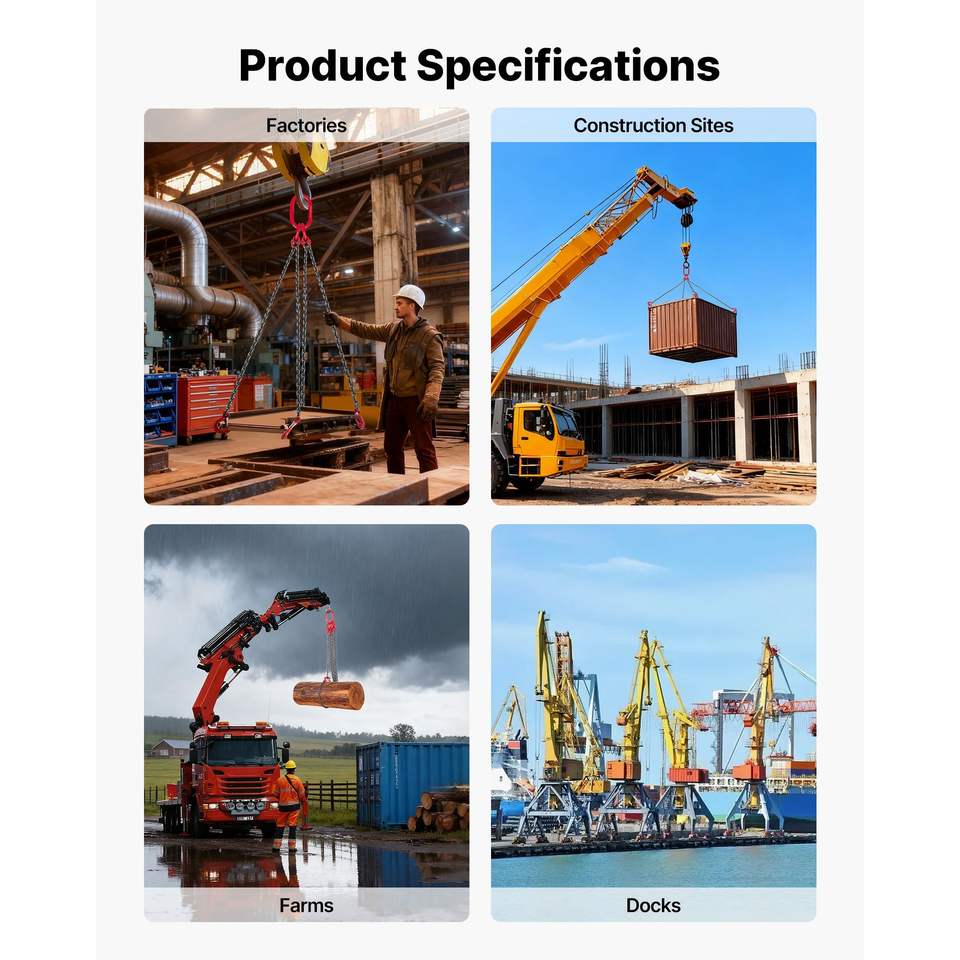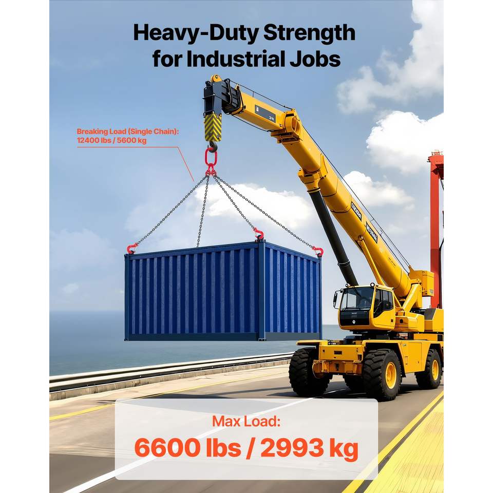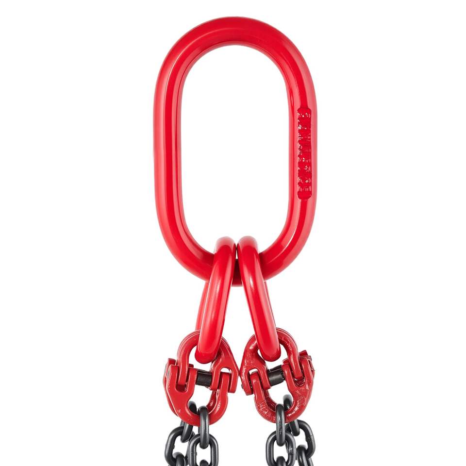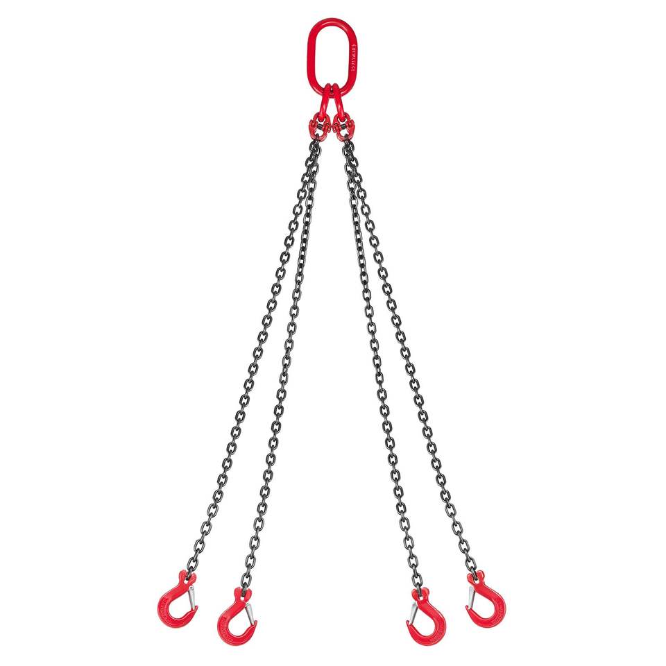 Braca a catena in acciaio legato G80 per impieghi gravosi, 1/4 x 5 piedi, con 4 ganci a grappino, capacità di sollevamento 6600 libbre