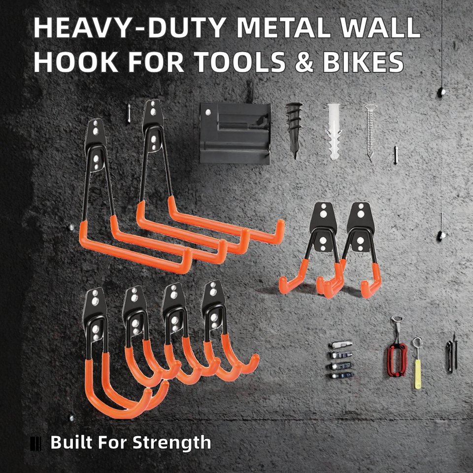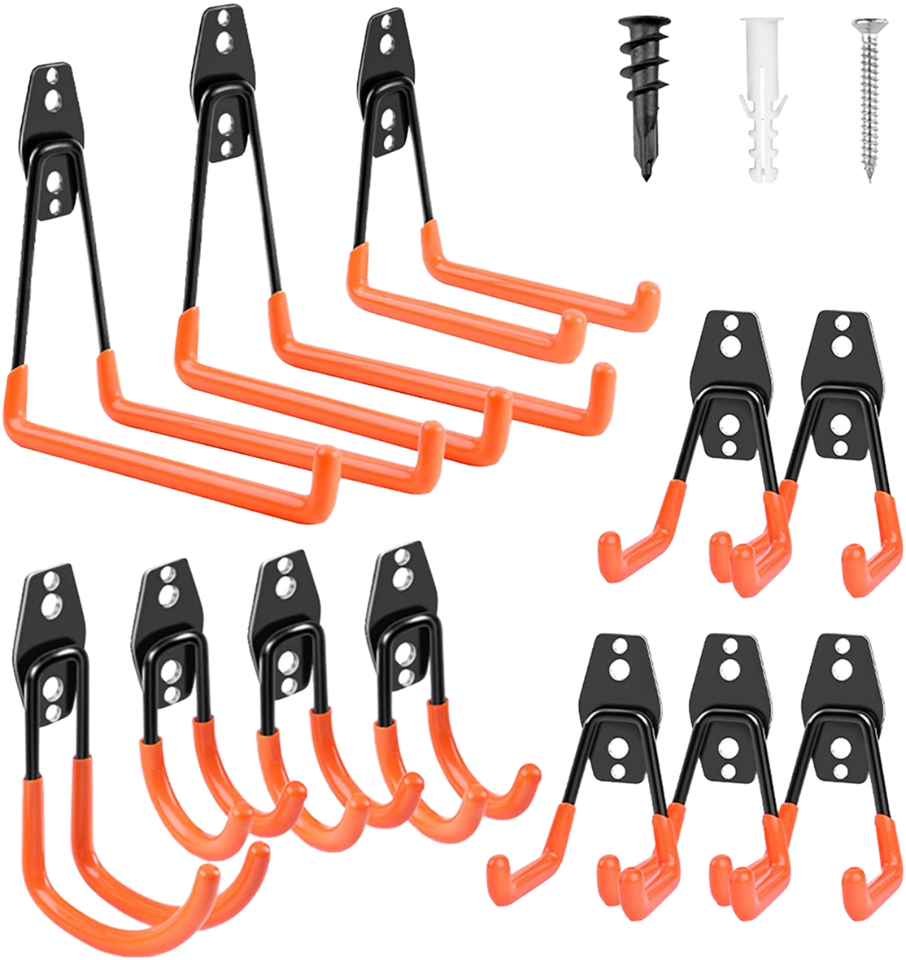 Set di Ganci Robusti per Garage - Ganci Utilitari Antiscivolo da Parete per Organizzare Biciclette, Scale, Attrezzi, Attrezzature da Giardino