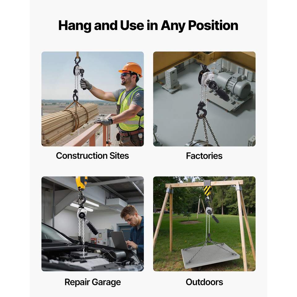 Paranco a Catena Manuale per Carichi Pesanti 1/2T (1100 libbre) Capacità 20FT (6 metri) Sollevamento Catena in Acciaio Legato G80 Doppio Blocco Meccanico