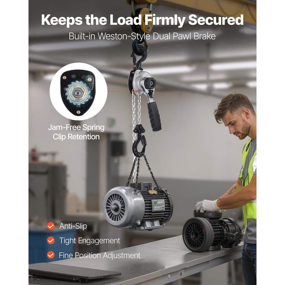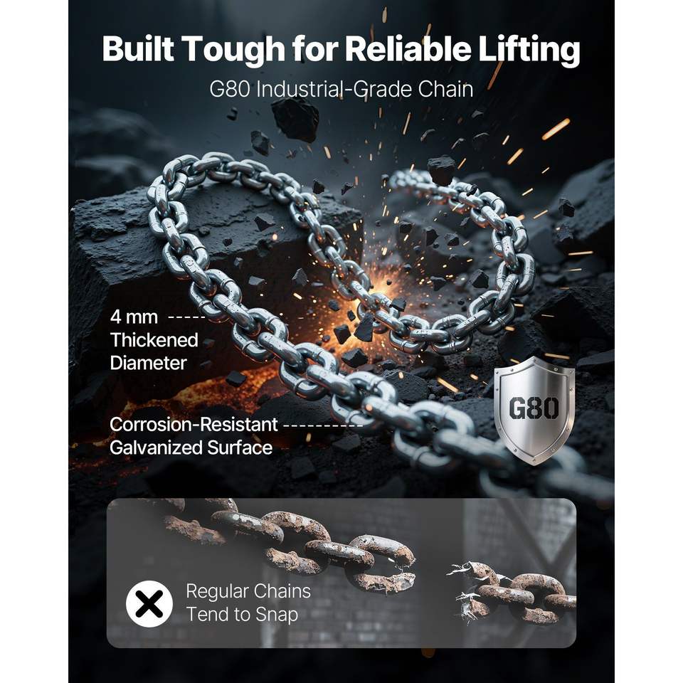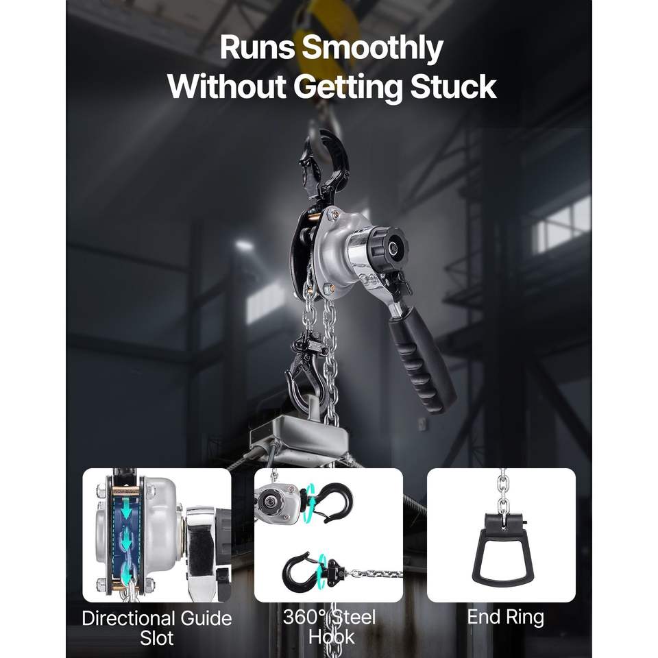 Paranco a Catena Manuale per Carichi Pesanti 1/2T (1100 libbre) Capacità 5FT (1,5 m) di Sollevamento, in Acciaio Legato G80, con Doppio Blocco, Paranco Meccanico a Trazione