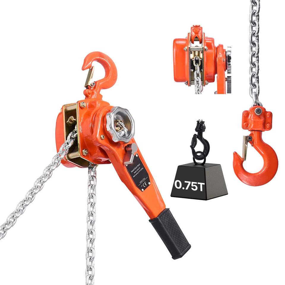 Paranco a Catena Manuale per Carichi Pesanti 3/4T (1650 libbre) Capacità 20FT (6 metri) Sollevamento Catena in Acciaio Legato G80 Doppio Blocco Meccanico