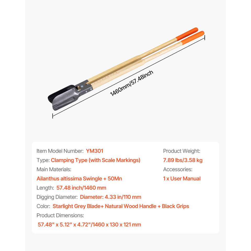 Scavatore Manuale per Pali Resistente con Manico in Legno, Scala Graduata e Lama Metallica per Installazione di Pali all'Aperto