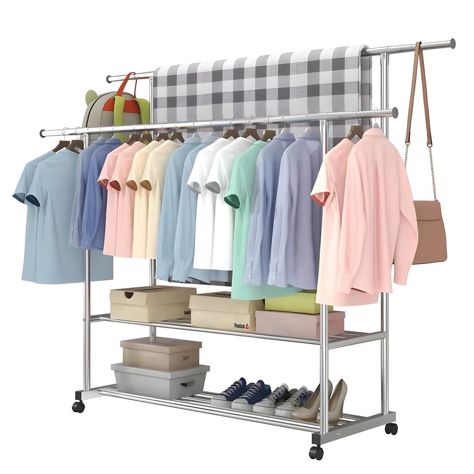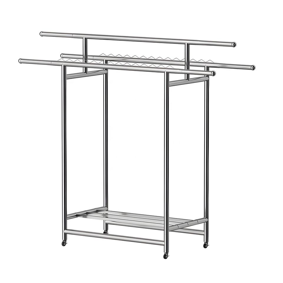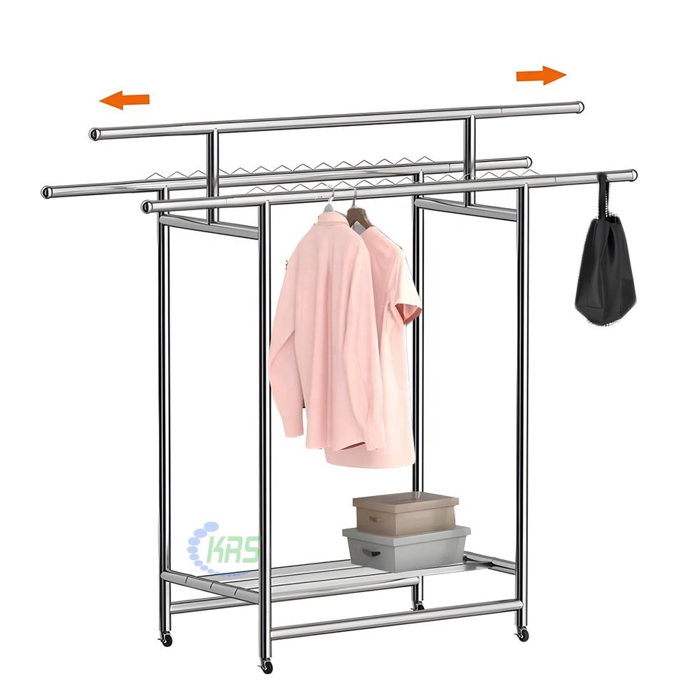 Appendiabiti Mobile Retrattile Robusto con Ruote, in Acciaio Inossidabile, Pieghevole, Stendibiancheria per Camera da Letto