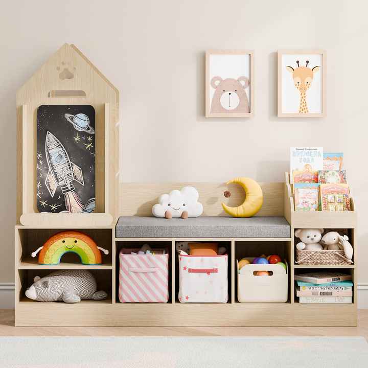 Heavy Duty modulo armadio di stoccaggio per soggiorno scaffale in legno giocattolo organizzatore di stoccaggio con lavagna e panca