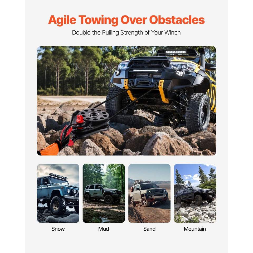 Sistema verricello per recupero fuoristrada per impieghi gravosi 30 T con blocco di recupero e resistenza al taglio di 66.000 libbre per fune da 0,4 pollici e 0,55 pollici