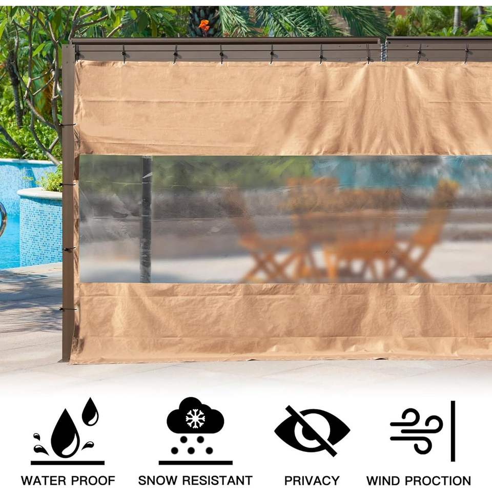 Heavy Duty Outdoor Clear Panel Curtain 18 oz Waterproof PVC Polyester Weather Resistant Tearproof Privacy Screen for Patios