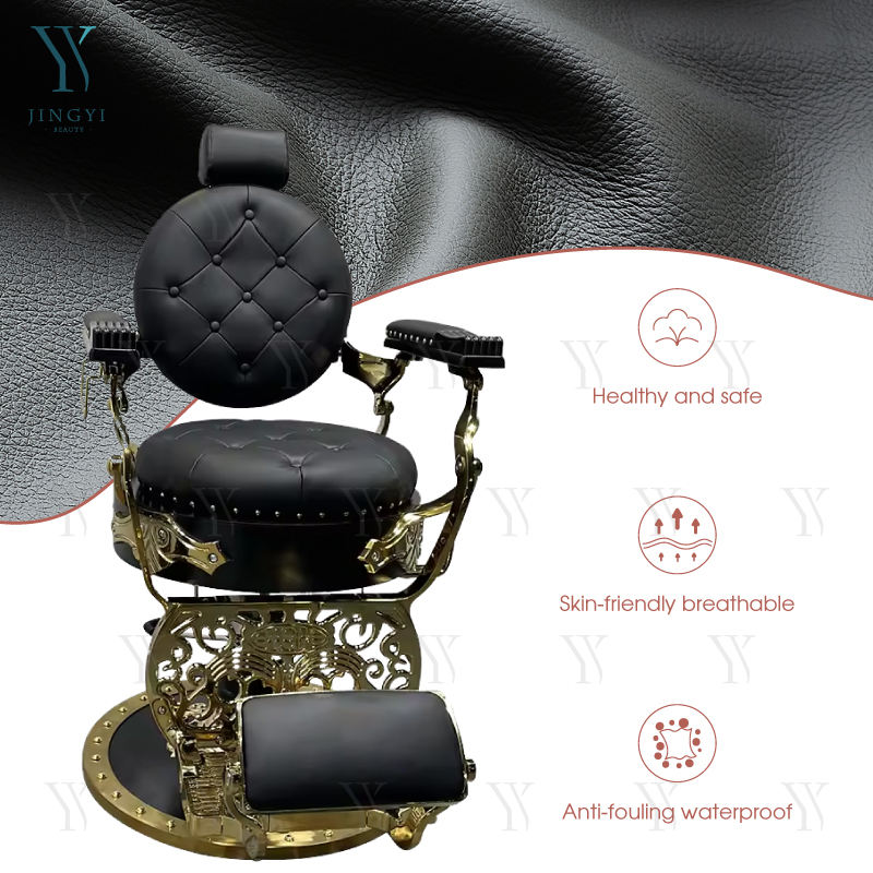 Poltrona da Barbiere Reclinabile Robusta con Base Dorata, Sedia Idraulica per Barbiere, Sedie Personalizzate per Salone da Uomo, Arredamento per Parrucchieri