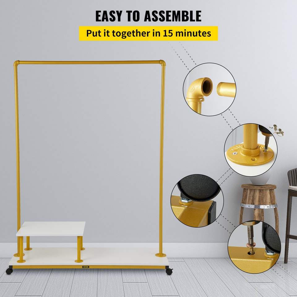 Organizzatore di vestiti rotolanti per impieghi gravosi 47.2 "x 14.2" x 63.0 "robusto telaio in acciaio 4 ruote girevoli modello di vendita al dettaglio