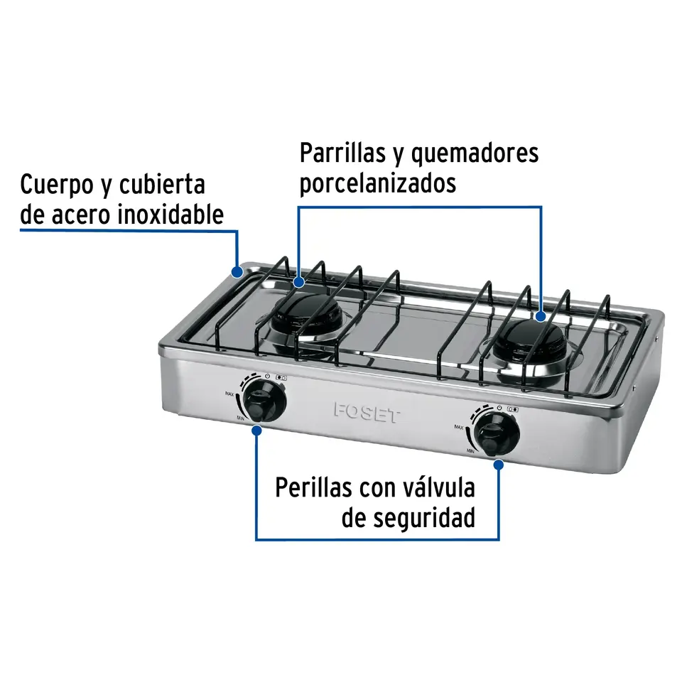 Heavy-Duty Stainless Steel Foset Gas Grill Portable 2-Burner Surface-Mounted for Parties Single Unit Boxed-Portable BBQ