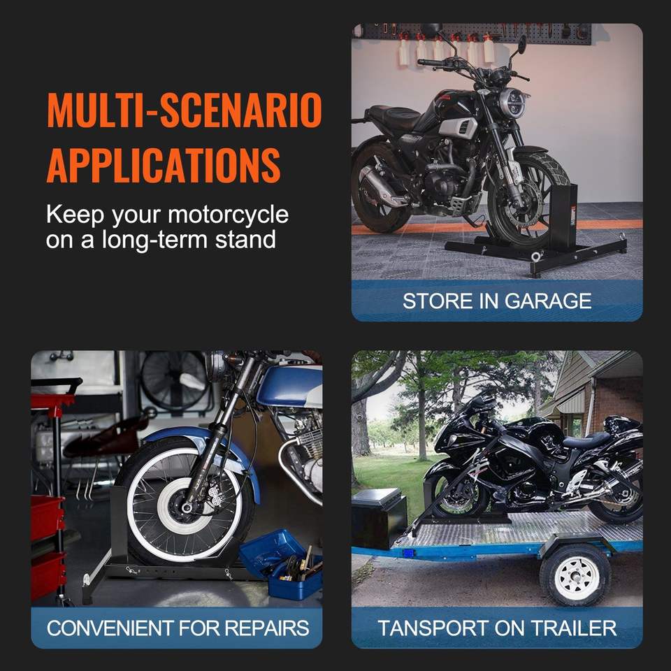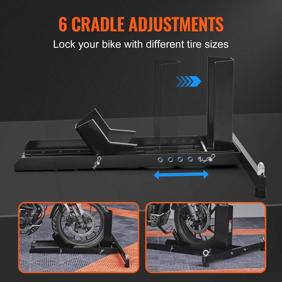 Supporto per Ruota Anteriore Moto in Acciaio Rinforzato, Capacità 816 kg, 6 Fori Regolabili, per Ruote da 1 pollice