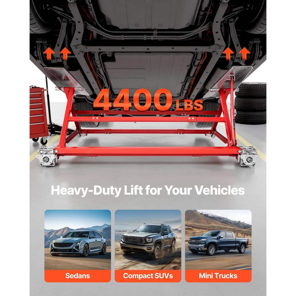 Sollevatore Auto Portatile in Acciaio Rinforzato, Capacità 2000 kg, Sollevamento Rapido, Altezza Massima 58 cm, Larghezza Regolabile, Ruote, Sollevamento Manuale