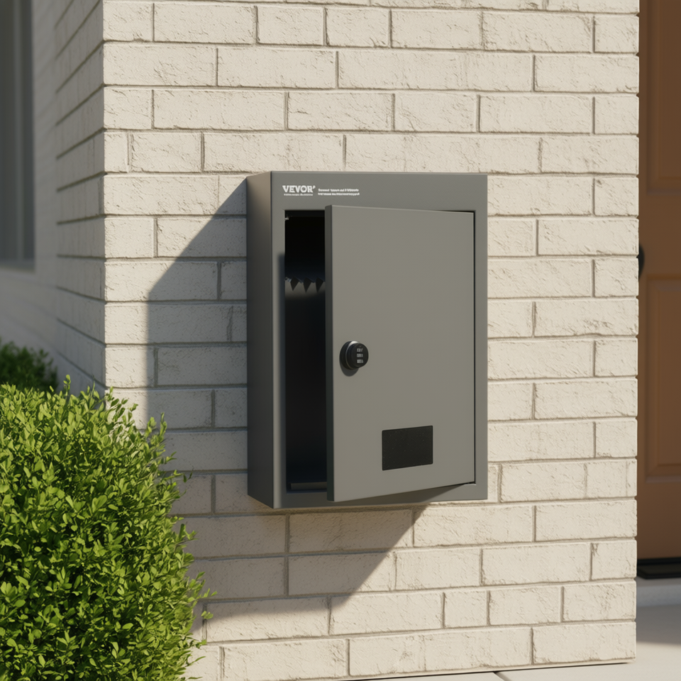 Steel Wall Mailbox 12.5x6.3x16.9 In Dark Gray Combination Lock Wall Mount Drop Box