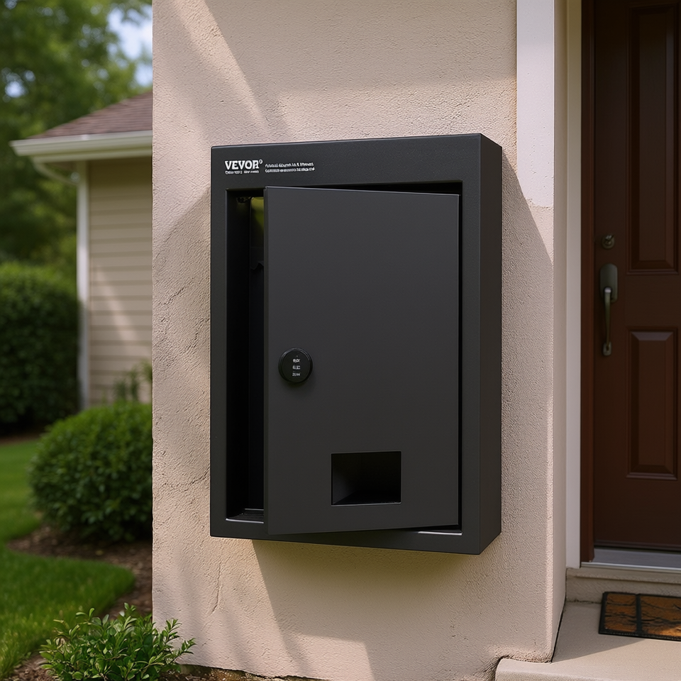 Cassetta Postale da Parete in Acciaio Resistente 12.5x6.3x16.9 Pollici Nera con Serratura a Combinazione e Accesso Frontale