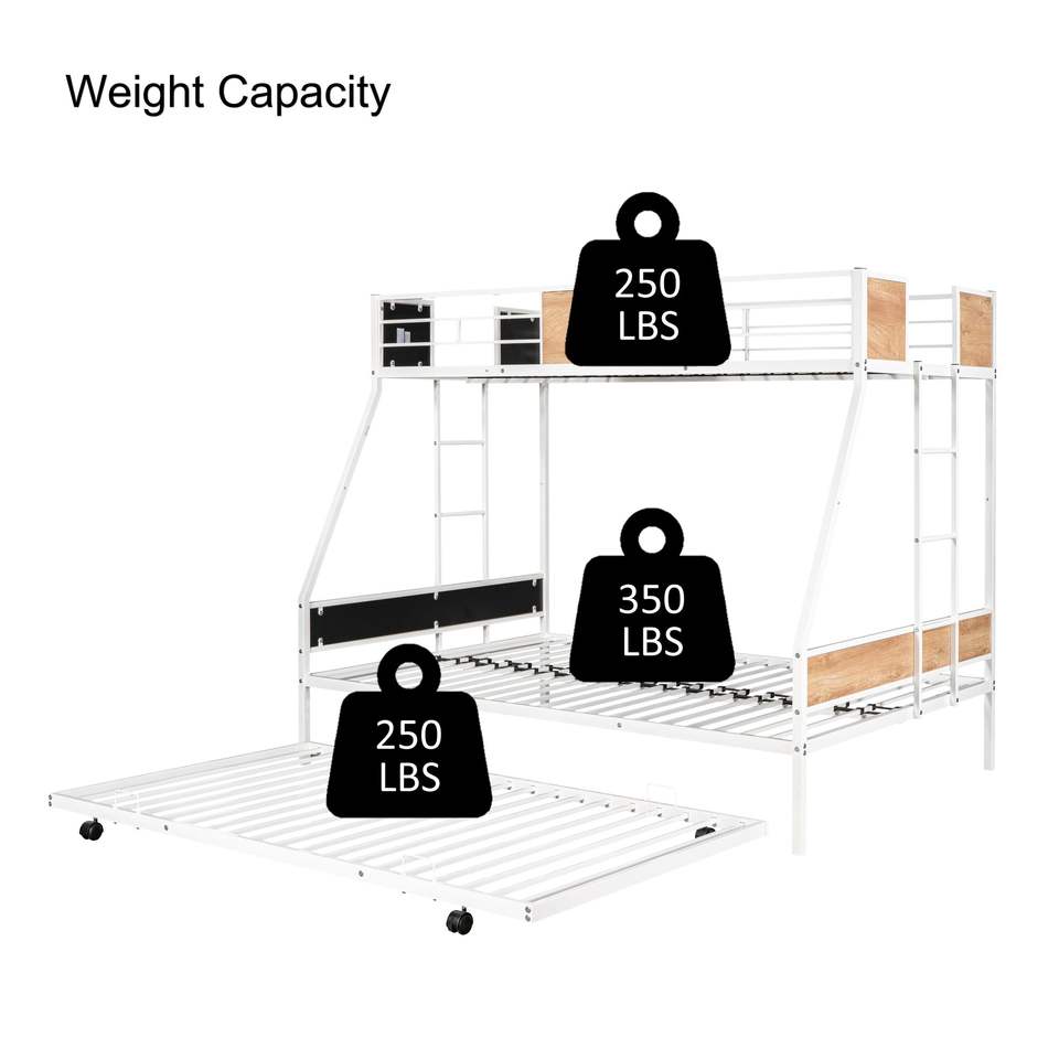 Letto a Castello in Metallo Robusto e Resistente con Letto Estraibile, Riduzione del Rumore, Ringhiera di Sicurezza, Decorazione in Legno, Pratico e Conveniente