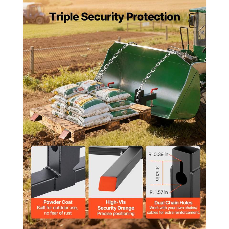Accessori per Trattori Pesanti, Benna per Caricatore, Forche per Pallet con Morsetto da 2000 Libbre, Lunghezza Totale 43 Pollici, Stabilizzatore Regolabile