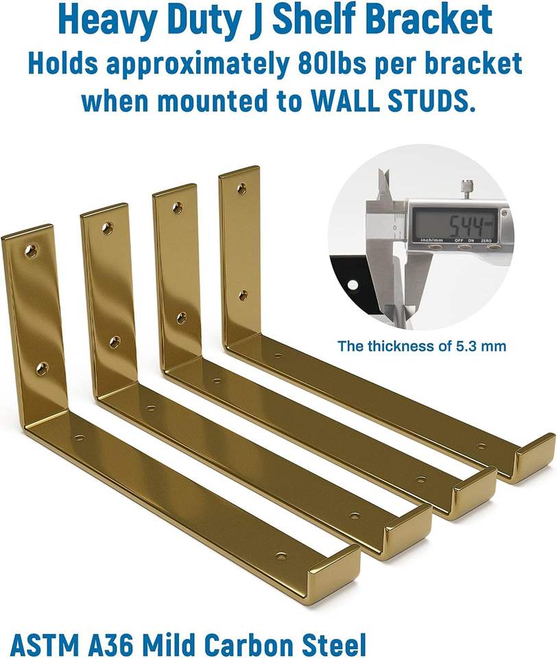 Staffa per ripiano vintage resistente a goccia addensata da 6x9,25 pollici appesa a parete galleggiante in oro staffa per ripiano