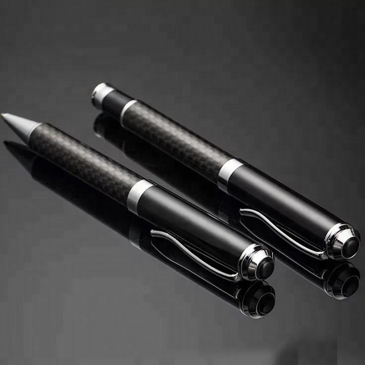 Penna a sfera in metallo personalizzata con logo di lusso pesante, penna in fibra di carbonio