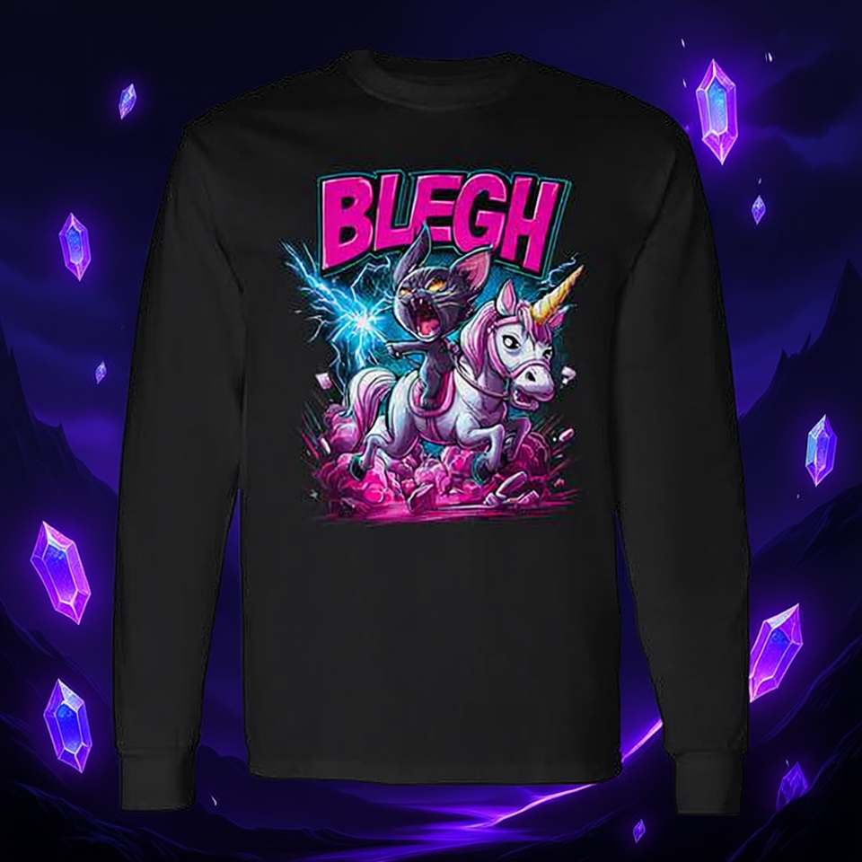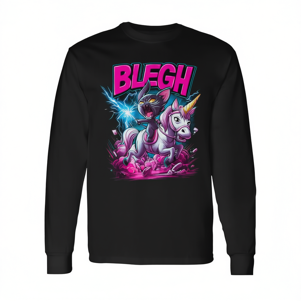 Maglietta a maniche lunghe Heavy Metal Cat Riding Unicorn Blegh