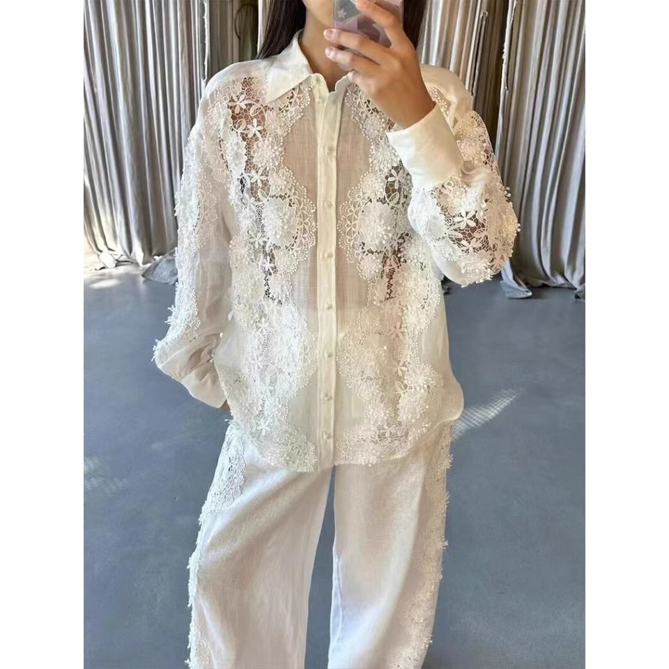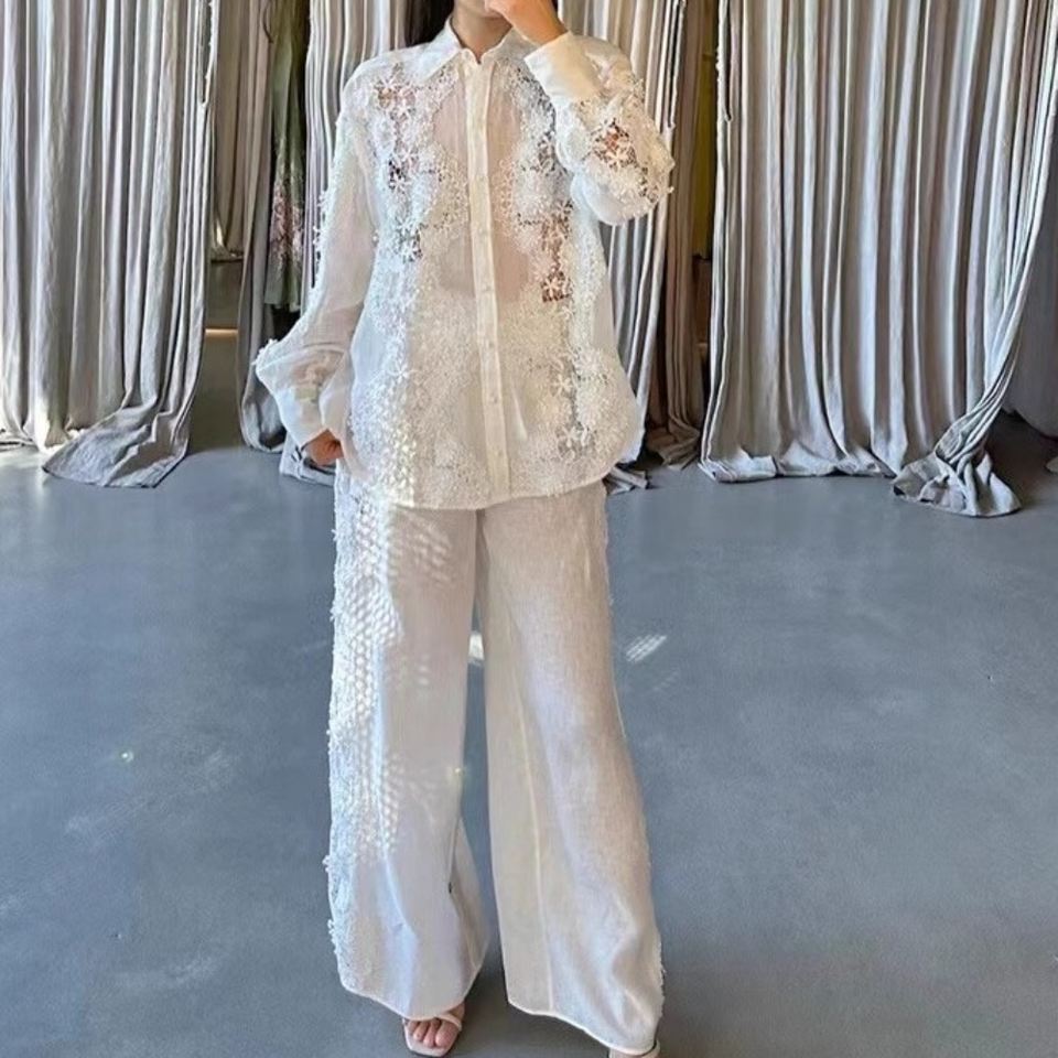 Maglia pesante in pizzo a maniche lunghe pantaloni elasticizzati a vita alta da donna 2 Set Sehe Fashion