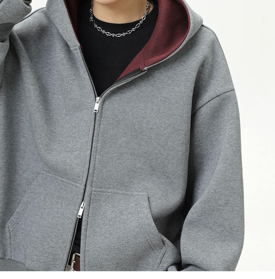 Felpa con Cappuccio da Uomo Resistente con Fodera Interna Coordinata, Stile Autunnale, Giacca Sportiva con Silhouette Corta e Ampia