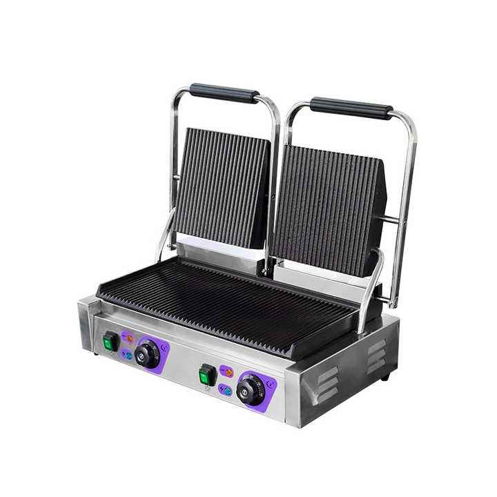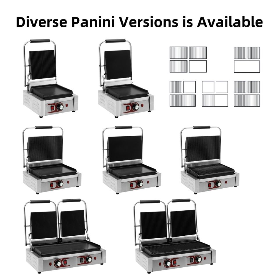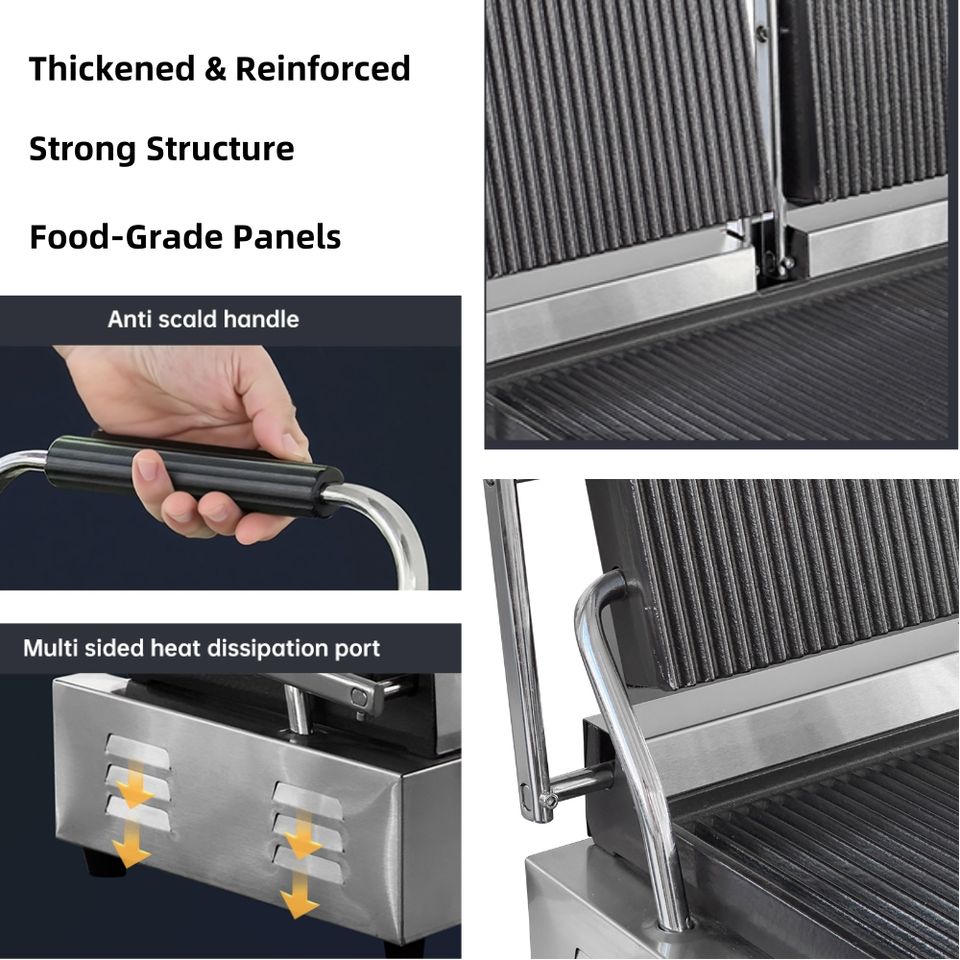 Heavybao Piastra Elettrica a Contatto Scanalata, Pressa per Panini Commerciale, Attrezzatura Ristorazione in Acciaio Inox, Griglia per Sandwich, Bistecchiera per Attrezzature Catering