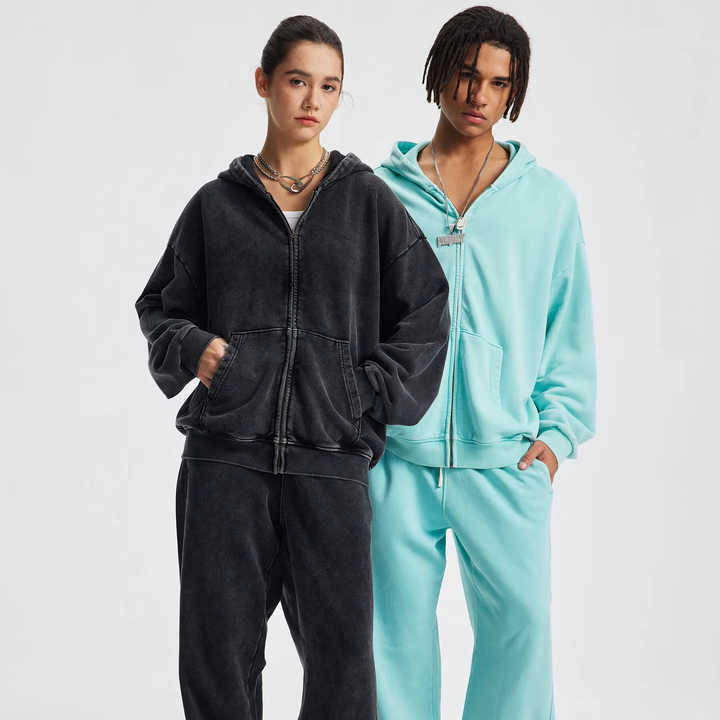 Felpe 100% pesante in cotone lavato francese con cappuccio in spugna con Zip YKKzipper Unisex Street Styles oversize Vintage con cerniera a cerniera