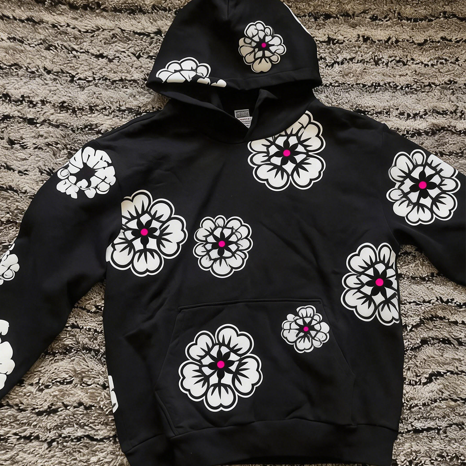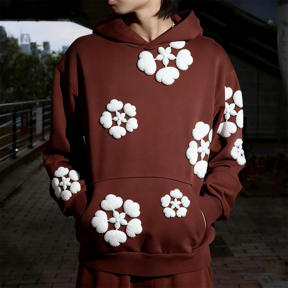 Heavyweight Cotton Mens Hoodies Pullover Streetwear Denim Puff Printing Flower Designer Winter Spot Goods Clothing Manufacturers