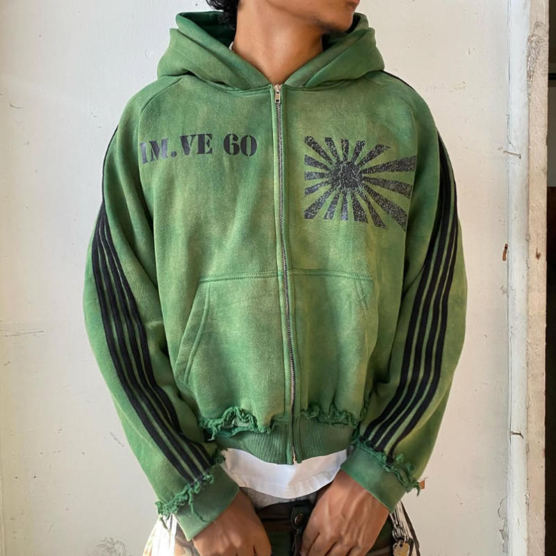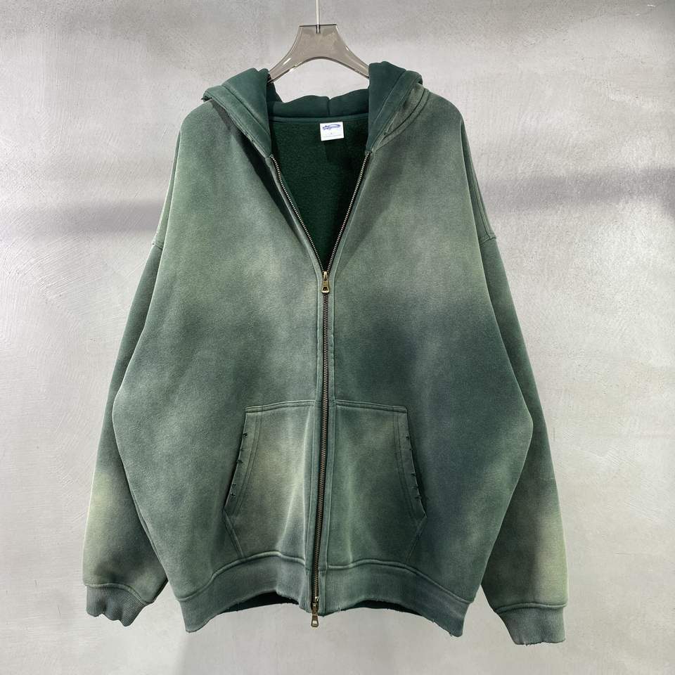 Felpa con cappuccio pesante personalizzata vintage con zip, lavaggio acido, effetto distressed, tasche, da uomo, oversize, in pile, tinta unita
