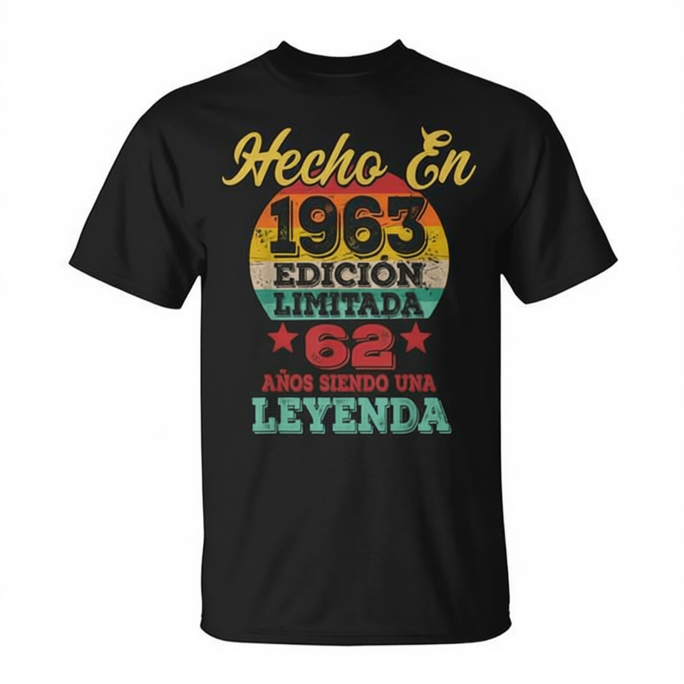 T-Shirt Unisex 'Hecho En 1963 Edición Limitada 62 Anos Leyenda', Girocollo, Manica Corta, Maglietta Promozionale per Adulti