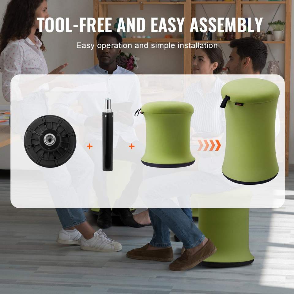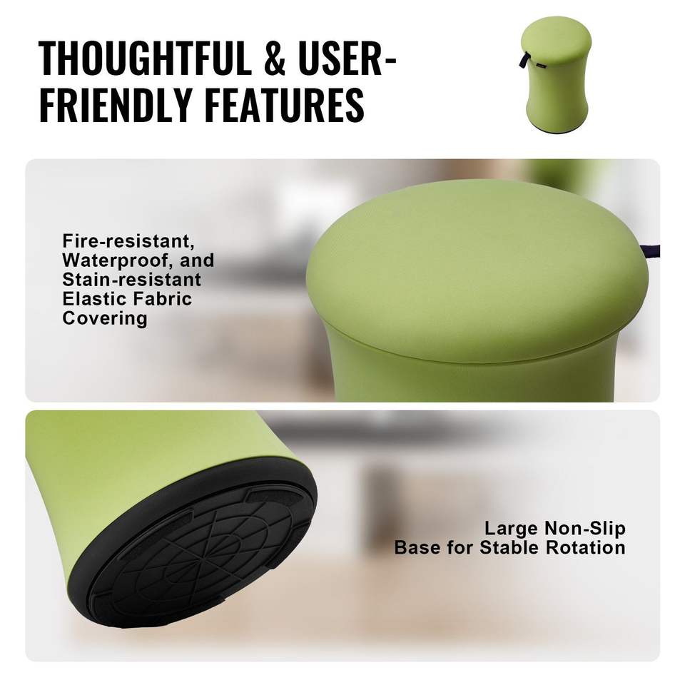 Height-Adjustable 19.3-25\" Green Fabric Cover Wobble Chair 20 Degree Tilt Flexible Iron Sponge Seat Wobble Stool for Office
