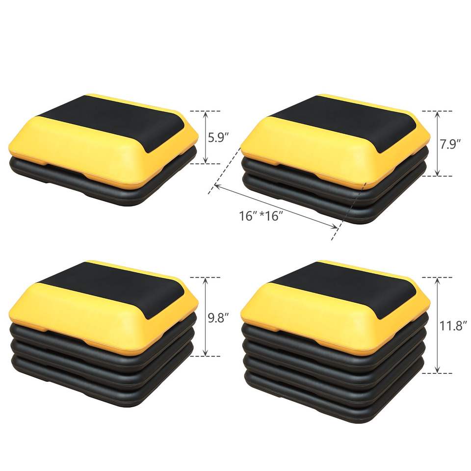 Height-Adjustable 4 Riser Yellow Step Aerobics Platform Fitness Equipment Stepper Trainer Exercise Step Platform