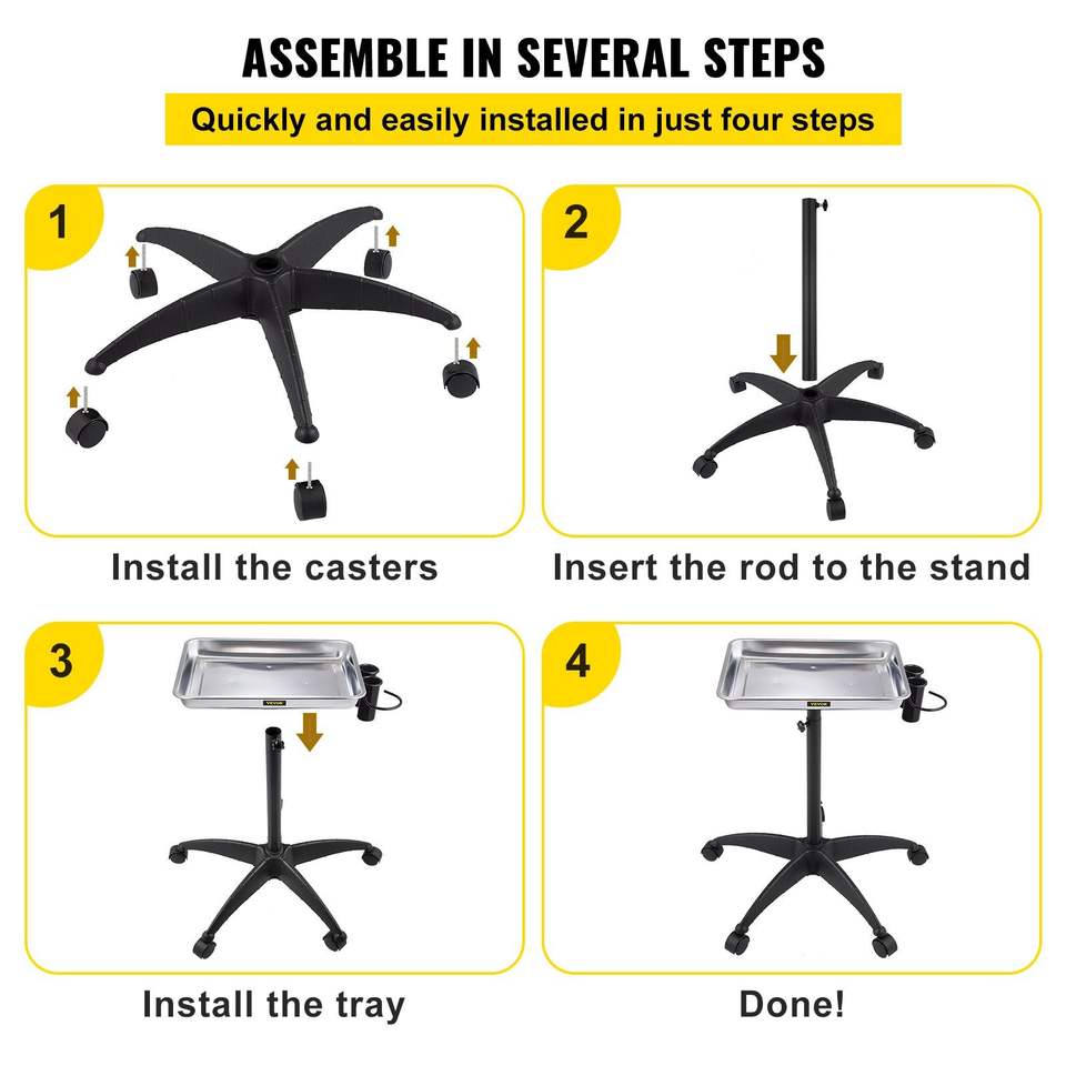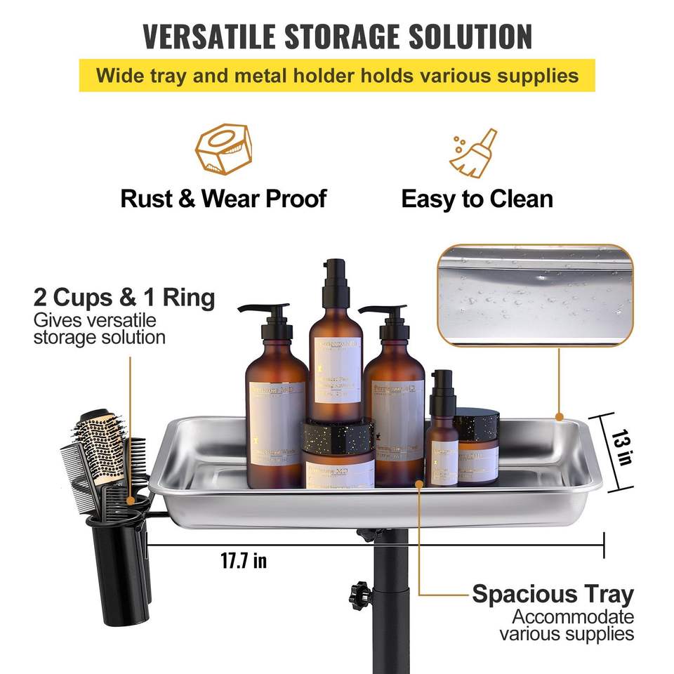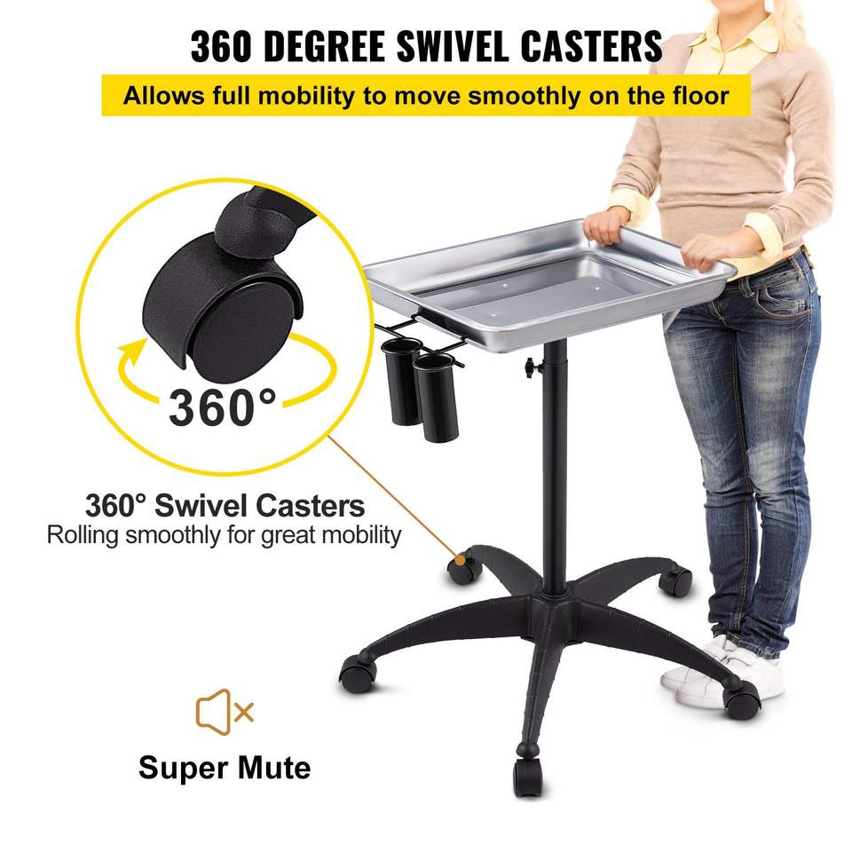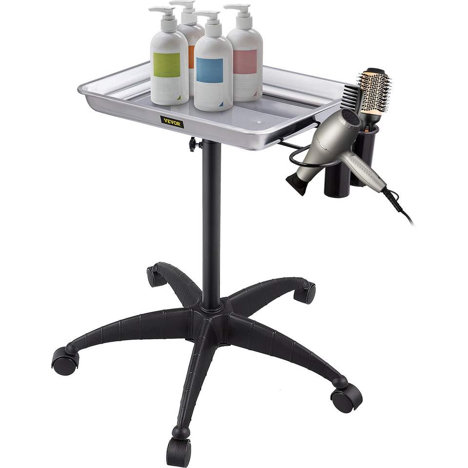 Carrello da Salone Regolabile in Altezza in Acciaio Inossidabile, Facile da Montare, con 2 Portabicchieri e 1 Anello Metallico, Vassoio Porta Mayo