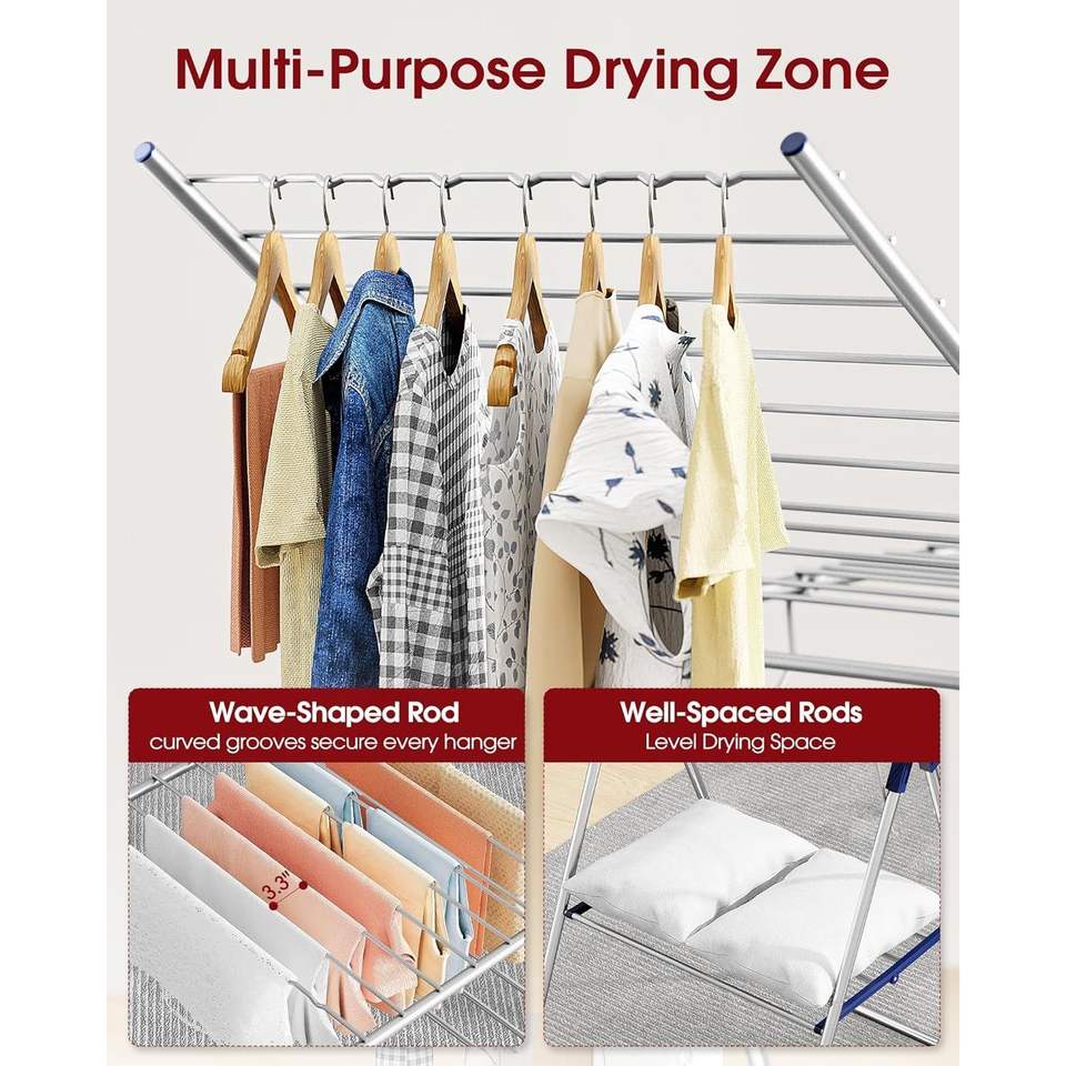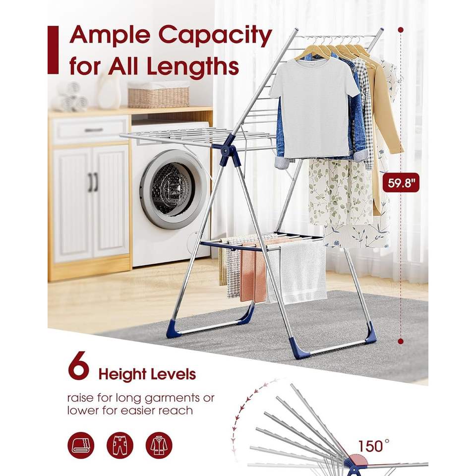 Stendibiancheria Pieghevole in Metallo con Ali Regolabili in Altezza, Stendino Autoportante Richiudibile per Biancheria da Letto e Lavanderia