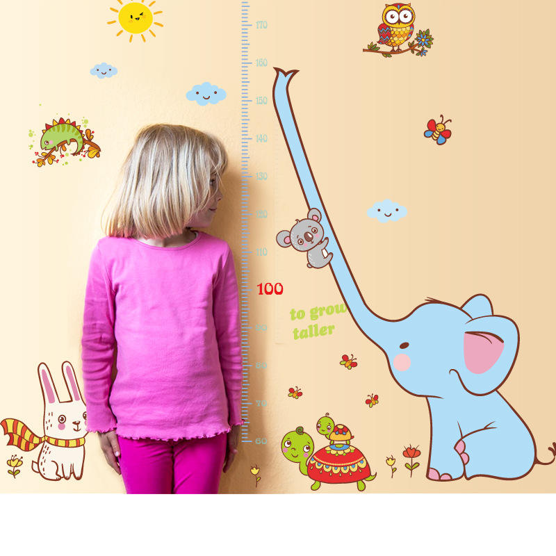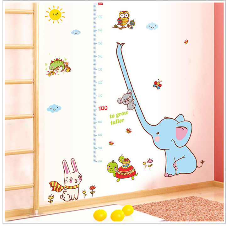 Height Measurement Ruler Wall Stickers Elephant the Kindergarten Children Room to Grow Taller Height Chart Kids Wall Sticker