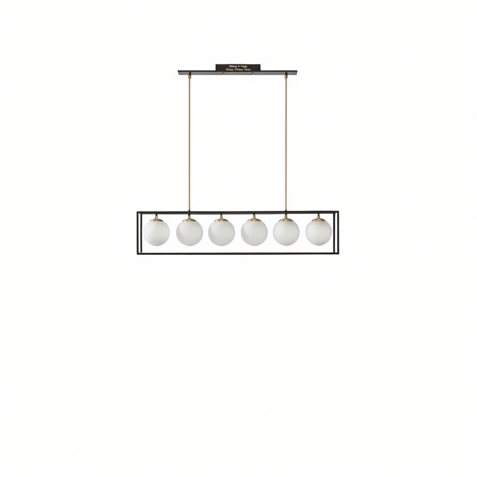 Helena 6-Light Frosted Glass Globe Linear Chandelier Black Pendant Light for Home Decor